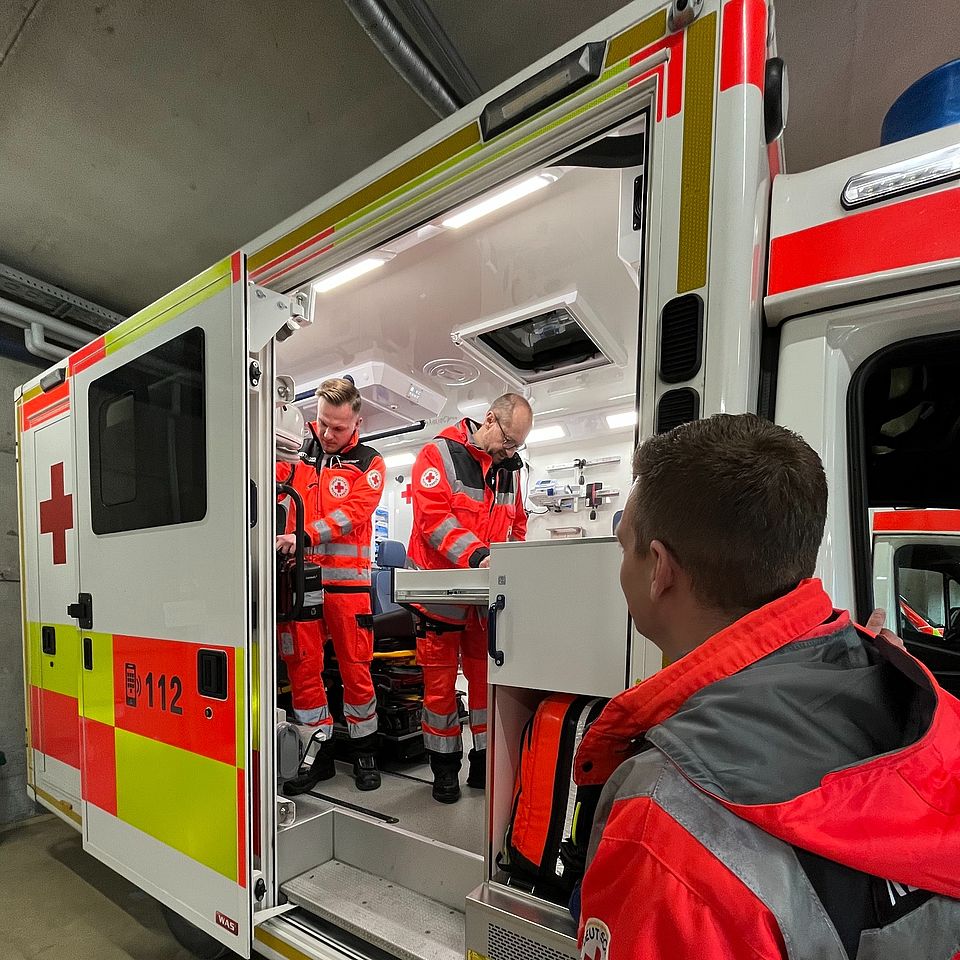 Unser Kreisgeschäftsführer Dr. Martin Rieger, der Leiter Rettungsdienst (komm.) Fabian Heierhoff und sein Stellvertreter (komm.) Tobias Wittmann waren selbst als RTW-Besatzung im Einsatz. Zuerst der Fahrzeugcheck (Foto), danach hieß es: ab zum Einsatz. So begann auch für drei Führungskräfte des BRK Ingolstadt ein ganz normaler Dienst im Rettungsdienst – nah dran am Alltag, an den Abläufen und an dem, was draußen wirklich zählt.